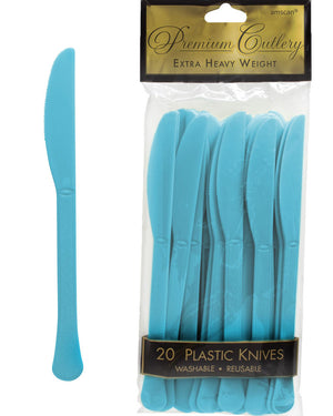 Cut through the stress of finding enough cutlery for all your guests at your next party with these Caribbean Blue Plastic Knives. The pack contains 20 heavy weight plastic knives that can be washed and reused.