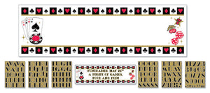 Set the scene for your Casino themed party, with this fun range of party accessories in classic black, red and white. Decorated throughout with clubs, diamonds, spades and hearts. So whether you are planning on playing card games, roulette or black jack your party atmosphere won't be a gamble with these winning accessories. Casino Personalised Giant Banner - a 65" x 20" banner with 120 adhesive letters and numbers for you to customize your own message.