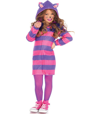 She'll be exploring Wonderland with a smile on her face in this Cheshire Cat Girls Costume. The costume features a cosy pink and purple striped dress with front zip and hood. Cat ears are attached to the hood and a tail is sewn on to the back of the costume.