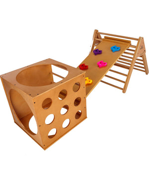 The Childrens Play Cube 60cm x 60xm is the perfect toy for toddlers to keep them entertained for hours. It is a great way to keep children active and engaged as they grow. Wooden activity toys are among the best toys which promote critical thinking and creativity. While playing with the Cube, kids develop motor skills and enhance their physical strength. It also opens up the field for toddlers to have the best imaginative play. There are many ways to play with our Cube. Kids can play with balls and try to pass through the holes. They can also move in and around, climb up and down the wooden rungs, or crawl through the Cube. This eventually helps them to practice hand, eye and foot coordination, which are very crucial skills for kids to develop as they grow. It also works with our other play equipment toys such as the Rock Climbing Frame/Slide and ClimbA. So you can create an amazing adventure playground for your kids at home. This wooden toy is very easy to assemble and made with quality hardwood, so you can be sure about its durability and quality. If you are looking for a gift that is perfect and useful for the young ones, then the Cube will be the right choice for you. You will be amazed to see how this wooden Cube enhances the young one’s creativeness, imaginative play and physical strength. Compatible with: Rock Climbing Frame, ClimbA, Mini ClimbA, Wobble Board Cube Includes: 1 Hardwood Frame, Hex Key for Assembling. Recommended Ages: 3+ Years. Safety information: Our climbing equipment should always be placed on a soft but sturdy play surface such as carpet, never use on hard ground or concrete. It is suitable for indoor or outdoor use, but should be kept dry and protected from the weather. Never leave your children unsupervised when playing, always be within a safe distance to assist them if required.