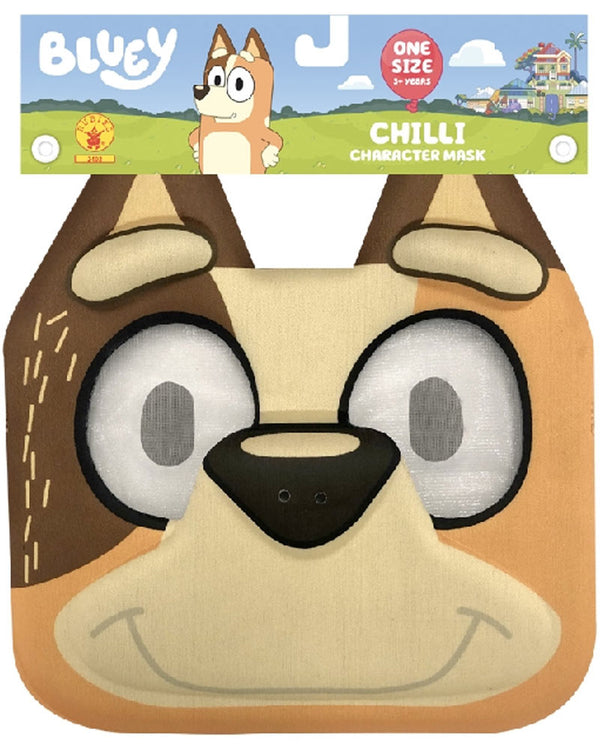 Transform into Bluey's much loved mum in this Bluey Chilli Eva Half Mask. The mask is made out of 3D shaped foam and features printed facial features as well as nose and eye holes covered with mesh. The mask has an attached elastic strap the secures behind the head.
