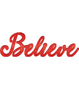 With this great Believe Red Glittered Standing Sign Decoration, you can be sure to make everyone believe. The standing sign is made from sturdy medium-density fibreboard and is shaped to look like the word "believe" in red, glitter cursive text. Place on your table as a centerpiece, on a shelf, mantel or any flat surface you like. Perfect for Christmas, Valentine's Day and other special events with a red theme. Combine with our range of Red party supplies including party cups, party plates, tablecovers and more.
