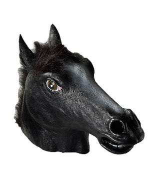 Wear this realistic looking Black Horse Deluxe Overhead Mask to your next dress up party. This latex overhead mask features an open mouth to see where you're going and an an attached faux black mane down the back.
