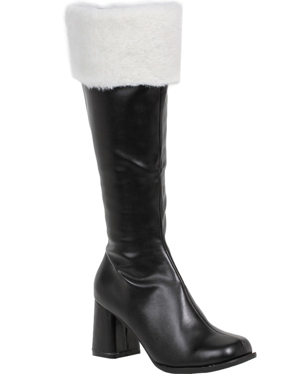 Your female Santa or Mrs Claus costume won't be complete without these fantastic Black with White Fur Go Go Womens Boots. The boots come in a Go Go boot style, are a matte black material and feature a squared shoe front, as well as a fuzzy white faux fur boot top. The boots also feature a 7.6cm/3in square block heel and a zipper down the side for easy wear. Complete your Christmas costume in style!