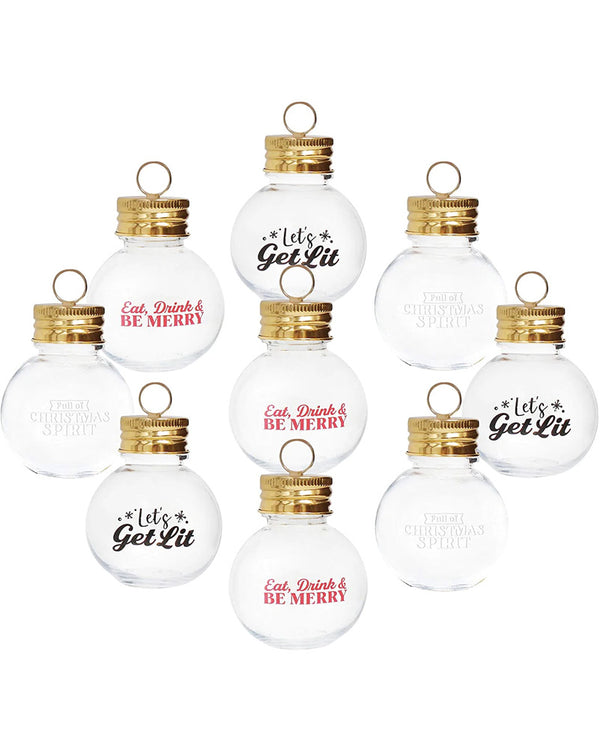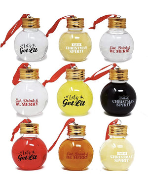 A Boozeball Ornaments 5cm Pack of 9! Skip the the french hens and turtledoves and get your loved ones what they really want–a drink. These transparent Christmas ornaments double as little drink bottles or baubles, and can be filled with a drink of your choice. Each container is 5cm (1.77 in) wide and can hold approximately 50ml (1.7oz) of fluid. Included are 9 baubles, plenty for a party. So, what are you waiting for? Eat, drink and be merry!