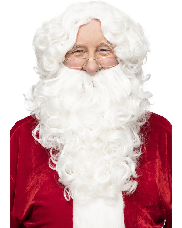 - Classic Santa Wig and Beard Set: Delivery presents to your friends and family wearing our Classic Santa Wig and Beard Set. Featuring a jolly Christmas accessory great for finishing your Santa Suit! Including Santa's white hair and beard! Complete the look with Santa's hat and glasses! Wear a wig cap for added comfort and to keep your own hair under wraps.