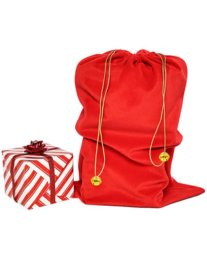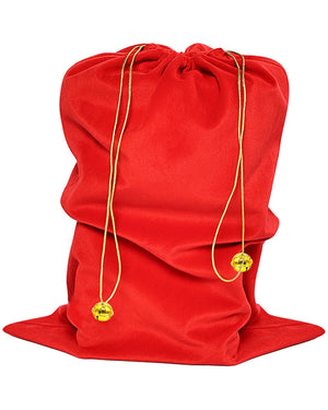 Have a happy holiday with this Deluxe Velvet Santa Sack 90cm. Included is a large, approximately 60cm x 90cm (23.6in x 35.4in) Santa sack in deluxe red velvet, with gold cord drawstring closure and attached gold bells. Bells measure 40mm (1.5in) diameter. This gorgeous festive sack will bring a hearty dose of Christmas cheer to any setting, from completing the ultimate Santa outfit, to decor at a Santa photo setup, or even just under the family Christmas tree. You could even use it to transport presents in true Santa style!
