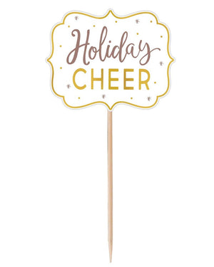 Bring the whole party with this Let's Mistletoe Deluxe Buffet Decoration Kit. Each item in the pack is carefully deigned to create one overall design appeal for your buffet table that is sure to leave your guests with their jaws on the floor. Included is one large tent card to guide your guest's attention to the table along with eight small tent card so you can clearly label each dish or use them to mention which dishes are allergen free or celiac friendly. Also included in the pack are a few eye catching decorations encompassing a glittered ribbon banner, two gold paper fans and four snowflake string decorations. Each of the provided signage pieces are carefully designed to fit in with the overall appeal of the pack, with a distinct gold backing up the Christmas white to create an illustrious design. Provided in the pack are two designs of signage style food picks, three in a large design and four in a medium design. These work perfectly for keeping the sense and tone of the celebration light and casual while keeping the sophistication the other parts of this pack bring. All you'll need to finish this décor pack is a fantastic desert recipe so your guests know that you can bring the whole party like a walking Christmas miracle.