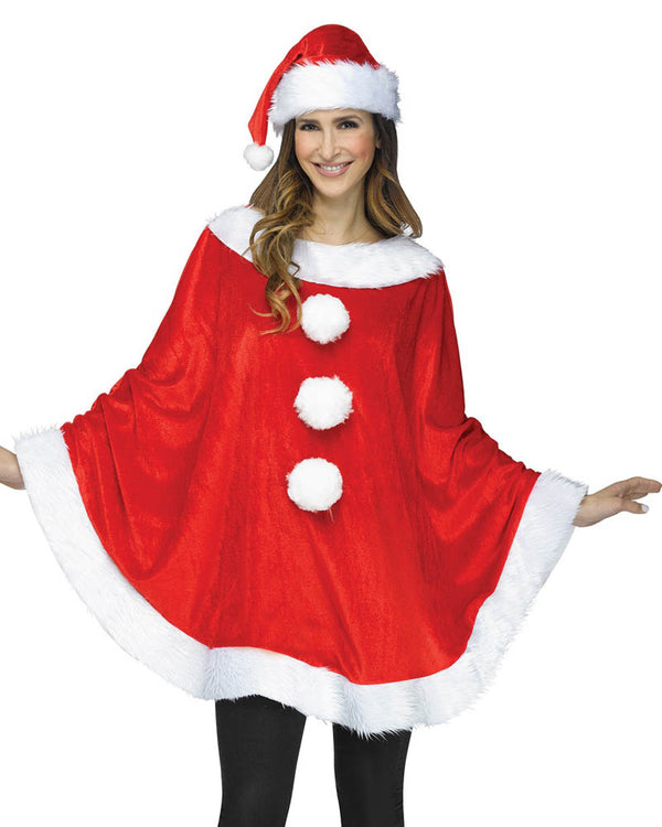 Add some fun to your Christmas with this Santa Plush Poncho with Hat. The soft red poncho has fully white faux lining around the trim and 3 white pom poms down the front. The matching Santa hat completes the look.