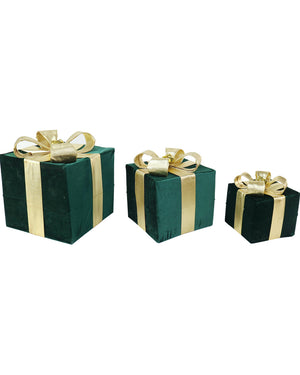 Christmas Velvet Presents Green and Gold 3 Piece