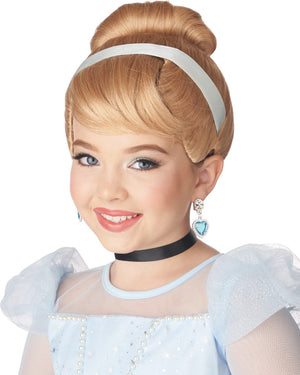 This beautiful Cinderella Blonde Kids Wig is a fantastic way to complete your Cinderella costume. Whether for your next Book Week event or princess party, this blonde updo is perfect featuring a front fringe, bun and an attached ribbon band just like Cinderella. Wear a wig cap for added comfort and to keep your own hair under wraps.