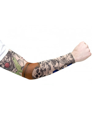 Trick your mates into thinking you've spent hours under the needle with this Clown Tattoo Sleeve. The sleeve is made from flesh coloured mesh and is covered with black and white fake tattoos.