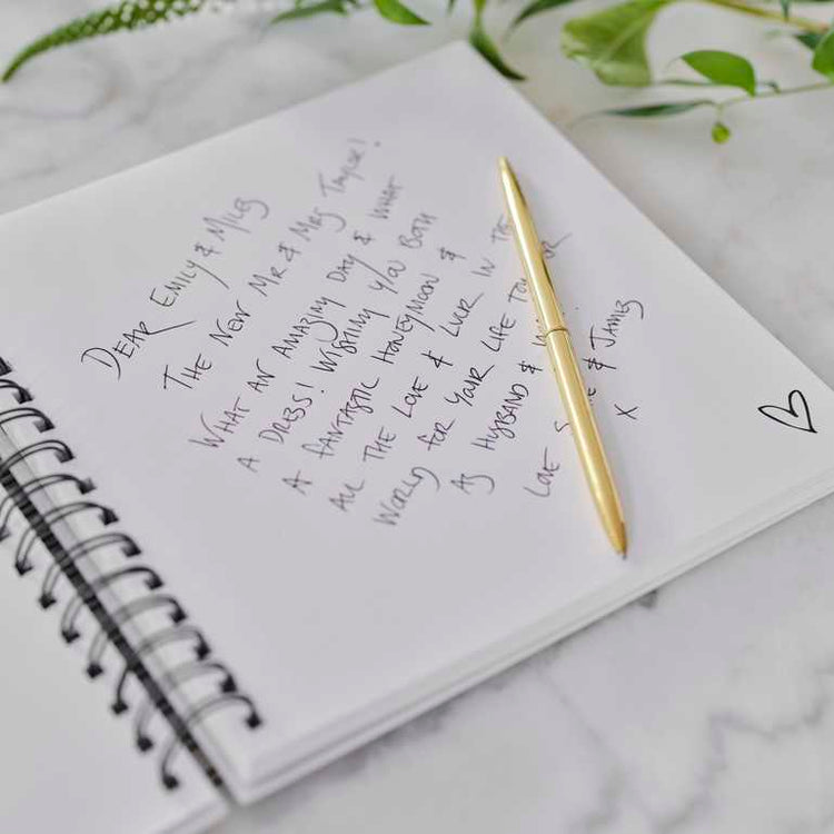 Make a statement with this Contemporary Wedding Black and White Wedding Guest Book. The sleek white cover features a black script font with the words "Our Wedding" and block font "Guest Book" to make it easy for guests to find. Inside, you'll find pages for guests to leave their heartfelt messages and well wishes. With enough space for hundreds of signatures, this guest book is perfect for even the largest weddings. This guest book is a must-have for any modern wedding, and it's sure to become a cherished keepsake for years to come. Combine with our range of Wedding party supplies including party cups, party plates, tablecovers and more.