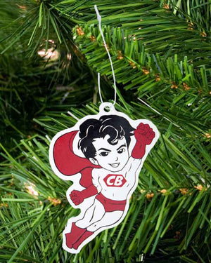 Give your car the aroma of freshness with this pine-scented Car Hanging Ornament. Featuring our CostumeBox mascot, it is printed on both sides and attached to an elastic loop so he can keep you company as you're driving.