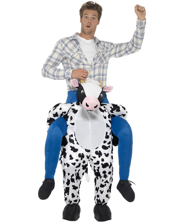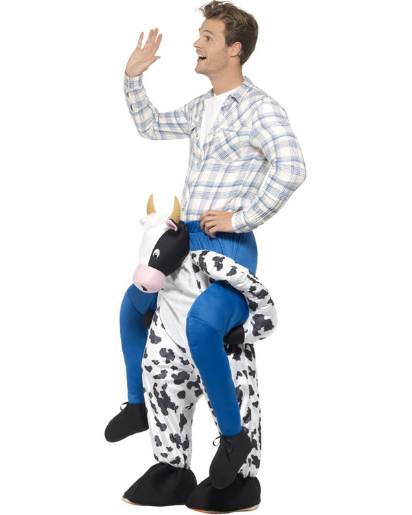 Frolick around with your favourite farm animal in this Cow Piggyback Mens Costume. This costume features an all-in-one pair of pants designed to make it look like you're being carried by a cow. The pants additionally feature attached faux legs to complete the illusion.