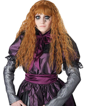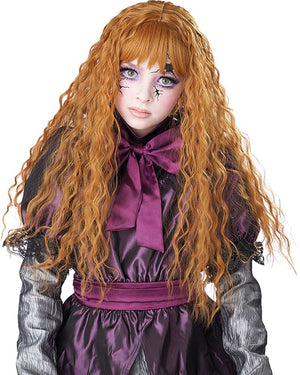 Get the perfect doll hair for Halloween with this Creepy Doll Strawberry Blonde Wig. The wig comes in a strawberry blonde and is long and wavy featuring short straight bangs. Add some ribbon ties and put the wig into pigtails as another option for your creepy doll look. Wear a wig cap for added comfort and to keep your own hair under wraps.