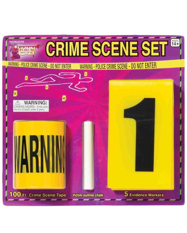 Create a crime scene at your next Halloween or Horror themed party with this Crime Scene Kit containing 100 feet of yellow and black tape, a chalk to draw victim outlines and 5 evidence markers. Just like the real thing.