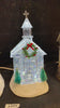 - Crystal church Christmas decoration with two snowy trees and a centre wreath.