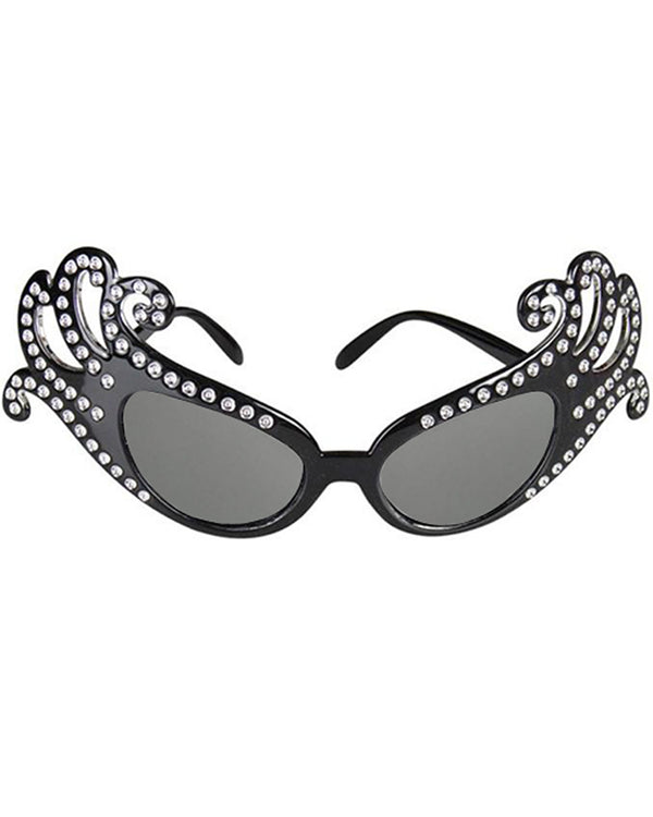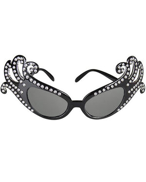 Be the leading lady herself with these Dame Edna Black Glasses. These glasses have black frames and clear lenses and are in the classic cat-eye style with diamantes. Add these to your delightful Dame Edna outfit to complete the look!