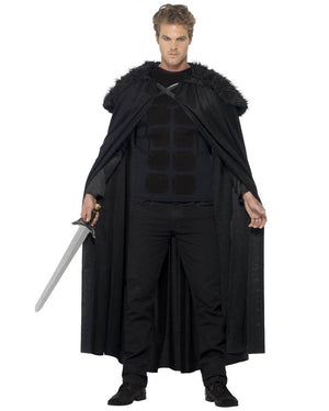 Prepare for battle in this Dark Barbarian Mens Costume. The outfit makes an ideal Jon Snow costume and includes a top with a dark printed muscle plate design and an ankle length cape with a dark fur collar that extends across the shoulders and fastens with two straps.