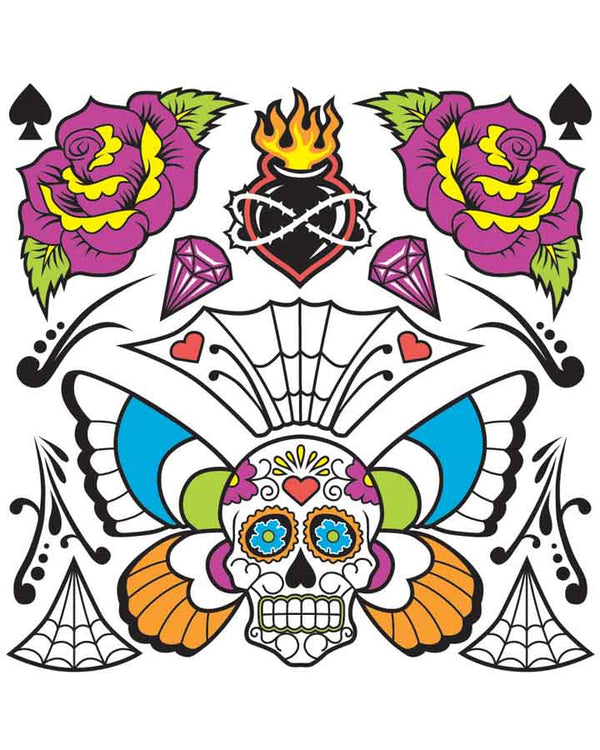This Day of the Dead Body Chest Tattoo is a great finishing touch to your Day of the Dead costume.