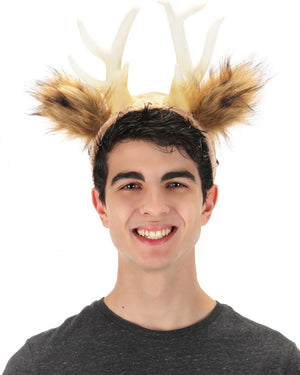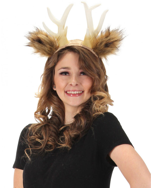 Are Dears you favorite animal than check out our Deer Antlers with Ears Deluxe Headband. Instantly become a doe eyed deer, reindeer or elk wandering the woods. The headband is great for finishing up your deer costume for any animal themed parties or for cosplaying as Fauns or Satyrs from legend! Featuring a headband with soft brown ears made from faux fur and attached bone coloured antlers. Be sure to check out our front and back deer hooves to complete the look.