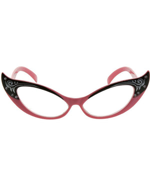 Get the '50s style with these Deluxe Pink and Clear Vintage Cat Eye Glasses. This sleek and sexy retro style will set you above the rest with it's great detail and unique look. At the very least these will make you look like a Gary Larson character.