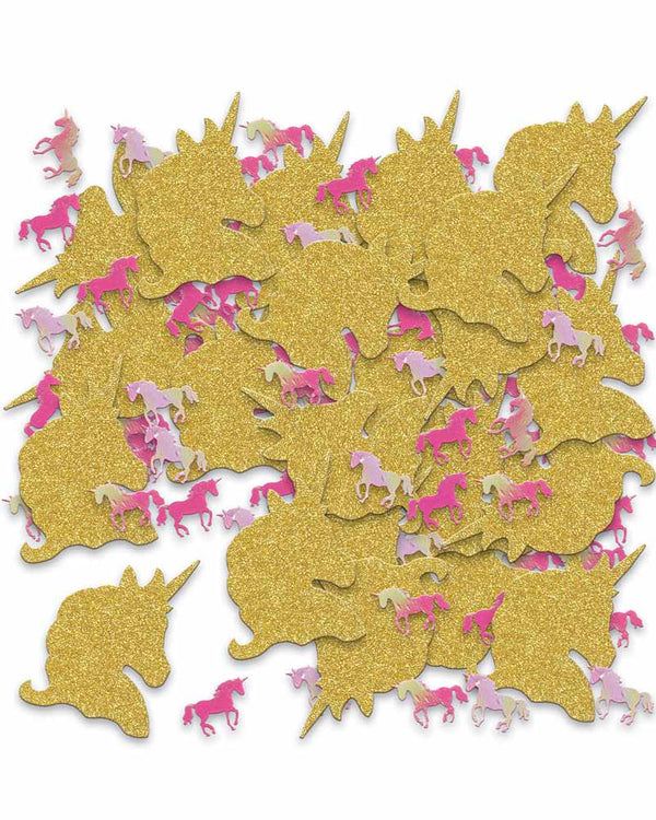 Bring the magic to your next unicorn themed party with this Deluxe Unicorn Sparkle Confetti. The confetti contains large glittery gold unicorn heads as well as small iridescent unicorns. Combine with our range of Unicorn party supplies including party cups, party plates, tablecovers and more.