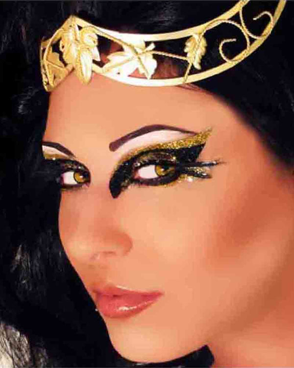 Give your eyes a mystical flick with this Desire Eyes Kit. This kit features gold and black stick ons with gold rhinestones, gold glitter goo, eyelashes and a tube of glue. Perfect for Cleopatra or a glamorous kitten.