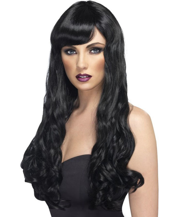 This Desire Long Black Wig is perfect to have in your dress up box. A go to accessory for fairytale princesses superheroes or sexy temptresses. Long with a slight wave and side swept fringe. Wear a wig cap for extra comfort and to keep your own hair under wraps.