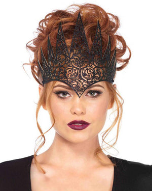Top your costume off with this Die Cut Black Royal Crown. The intricate crown has a low peak that comes to the top of the nose for that added sense of drama. Perfect for wicked sorceress type costumes.