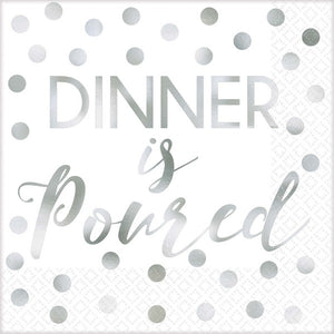 Dinner is Poured Beverage Napkins - Foil Hot-Stamped Pack of 16