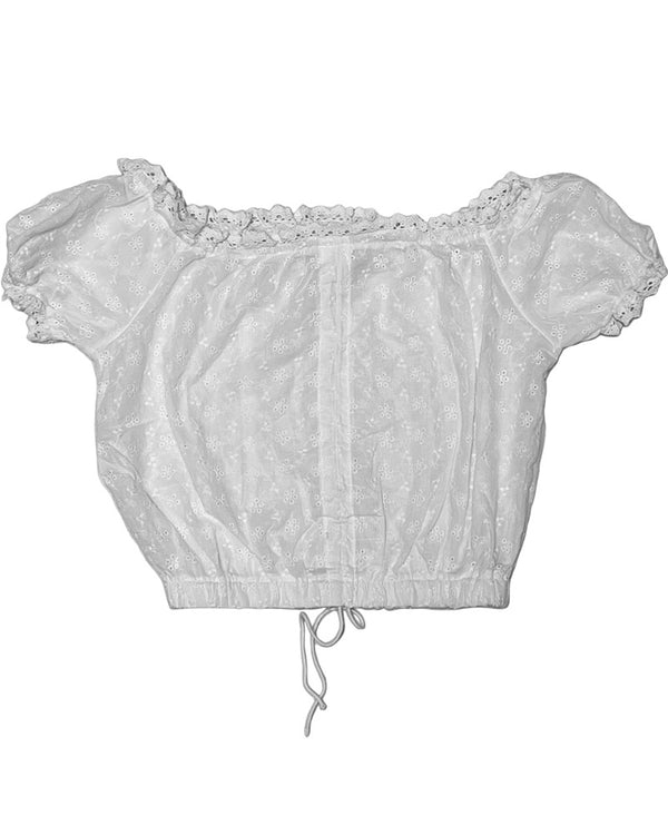 When you're in the bier hall for Oktoberfest, dress in our Dirndl Oktoberfest Blouse. Featuring a broderie anglaise styled off-the-shoulder white blouse with a pull tie in the middle of the bust. This top is perfect to use for your own Dirndl dress or to pair with lederhosen to complete your Oktoberfest look.