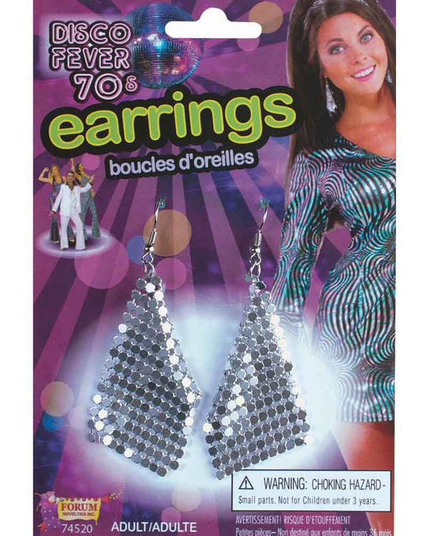 Add some sparkle to your outfit with these Disco Fever Silver Earrings. The diamond-shaped earrings are designed to reflect the light and shimmer as your tear up the dancefloor.