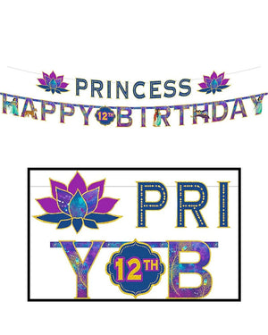 Get your hands on this giant Disney Aladdin Jumbo Add and Age Letter Banner to string up at your daughter's next birthday party! The letter banner reads "Happy Birthday" featuring images of Jasmine and Aladdin and with a customisable age section with numeric characters included to celebrate a birthday of any age. Another mini banner is also included that reads "Princess" bookended with gorgeous lotus flower cutouts. Combine with our range of Aladdin party supplies including party cups, party plates, tablecovers and more.