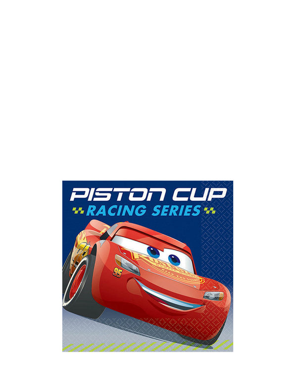For the perfect table setting for those speedy racers, add these Disney Cars 3 Beverage Napkins Pack of 16 or hand out to each of the racers to hold those yummy goodies in. These napkins come in a dark blue with an image of Lightning McQueen on the front, racing along a grey road. Above lightning McQueen in white and blue letters is the headline 'Piston Cup Racing Series'. Not only are these napkins great for setting the table with but ideal for easy messes and spills and keep speed racers clean. Combine with our range of Cars 3 party supplies including party cups, party plates, tablecovers and more.