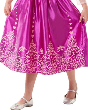 There's nothing quite like being the most adventurous princess of all time! In this Disney Gem Princess Rapunzel Girls Costume your little one is set for adventure - in sparkles! This costume is a pink dress with bright pink glittery accents on the hem of the skirt and on the edges of the puff sleeves and long glittered sleeves. A little image of Rapunzel herself is at the centre of the bodice!