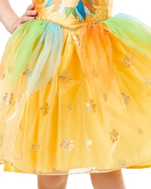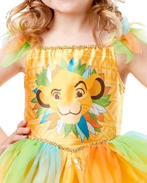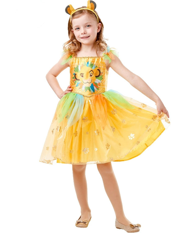 Pounce around and play with your friends across the African safari in this Disney Lion King Simba Tutu Girls Costume. Perfect for any Disney, Lion King, Safari or animal themed party, the costume comes as a gorgeous yellow tutu dress with a lion ears headband! The dress is made from a yellow satin and features a digitally printed image of the cartoon Simba with a leaf mane on the bodice, gold braided trimming across the neck and waist, as well as elastic satin straps with mesh glitter petal detail! The skirt of the dress is layered with a tutu overskirt in tulle fabric featuring glitter paw prints, and also included with the costume is a satin headband featuring 3D felt lion ears! Get ready to roar loudly and proudly!