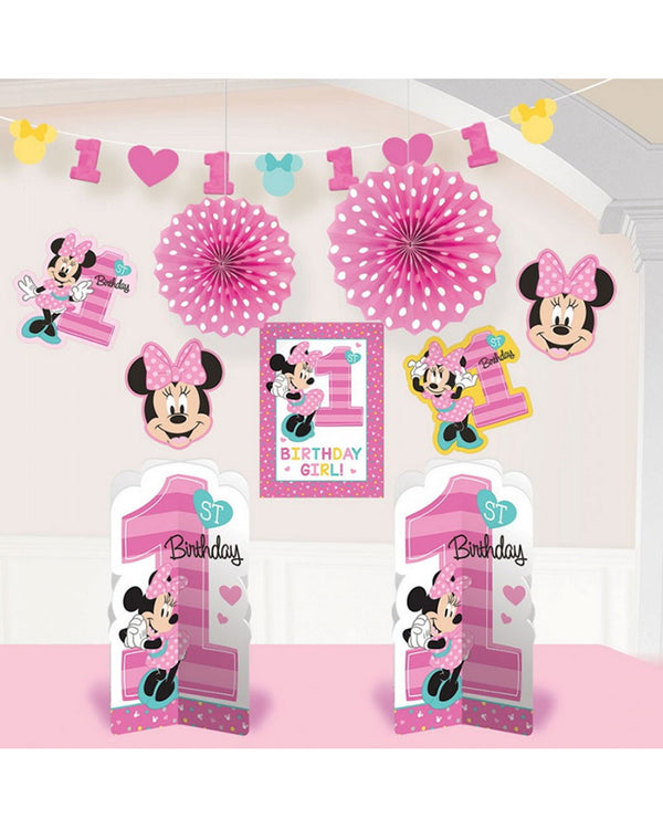 Make your little girl's day by spoiling her with our Disney Minnie Fun to be One Room Decorating Kit. Our beautiful kit includes 2 pink paper fans with white polka dots, 4 cutouts of Minnie's smiling face wearing a pink and white polka dot bow, 1 paper birthday girl cutout sign and 2 colourful centrepieces with Minnie sitting on a large pink number one! This kit is the perfect scene setter for your little Disney mouse!