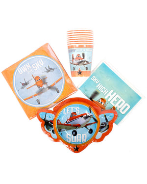 Fabulous range of party accessories and tableware inspired by the animated Disney movie, Planes starring Dusty Crophopper, Dottie and Skipper Riley. Have a fantastic flying themed party and bring a smile to all your party goers faces with these colourful party pieces. Great range from balloons to loot bags and more! This fab Disney Planes 40 Piece Party Pack is just the job and will have your party off to a flying start. Consists of 8 cups, 8 plates, 8 loot bags and 16 napkins. Flying fun!