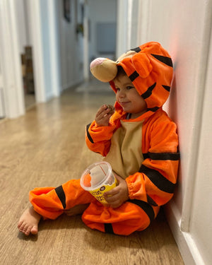 Your little one will be ready to bounce and pounce when they're wearing this adorable Disney Tigger Furry Jumpsuit Toddler Costume. Dress as the fun-loving tiger from the Winnie the Pooh books, who's favourite things to do are bounce about on his springy tail and hang out with his friends Piglet, Eeyore, Kanga, Roo, Rabbit and of course Winnie the Pooh. This furry costume features a full jumpsuit with attached hood and tail. Great easy costume for Book Week or any dress up party.