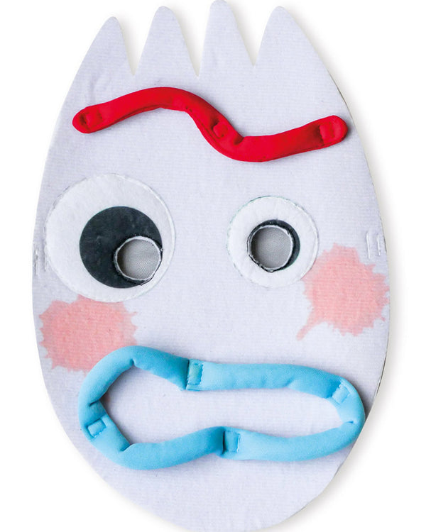 I am not a toy! Become the hilariously adorable spork (nope, not a fork) with that cute squiggly face and question your existence as the new character from Toy Story 4 in this Disney Toy Story 4 Forky Adult Costume! Even though you don't believe you're a toy, you can still bring joy to children just like all of the other Toy Story 4 toys do. The fun costume features a digitally printed jumpsuit with a white Forky body on a black background featuring glitter buttons and pipe cleaner print on full length sleeves, as well as attached shoe covers with a printed rainbow emblem on the left foot. To complete the pipe cleaner arms there are attached hand-covers with three-fingers and printed pipe cleaner fingers. Also included is a white felt mask with a fork (or spork) shaped head featuring printed eyes and cheeks detail and moveable mouth and eyebrow features so you can give Forky any expression you feel.