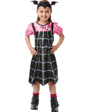 Go from Transylvania to Pensylvania in this adorable Disney Value Vampirina Girls Costume. Wake up and step outside dressed as the adorable Vampirina this Halloween! Vampirina 'Vee' Hauntly has just moved to Pensylvania with her mum and dad to open a bed and breakfast for other monsters like ghouls and ghosts. Now with this costume you can get up to all the same mischief as Vee! Including a headpiece that looks just like Vampirina's hair, and a dress just like the one she wears in her Disney Junior series, all you'd need is a little bit of purple paint to make her periwinkle skin tone and some cute vampire teeth to complete the look!