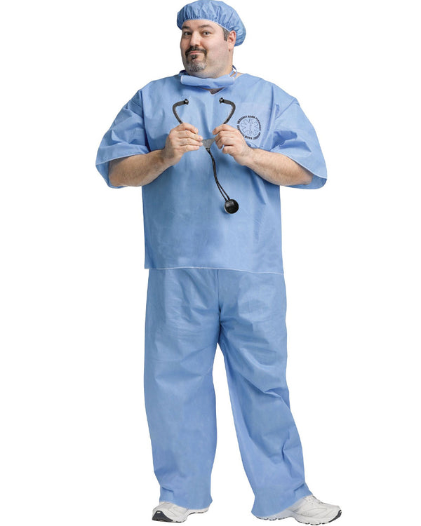 Our Doctor Doctor Mens Plus Size Costume features a lightweight set of scrubs including a blue top, matching pants, cap and face mask covering. You'll look ready for surgery in no time, just add a stethoscope and maybe some blood if you're going for a Halloween vibe. Great for Doctors & Nurses parties, Halloween and more.
