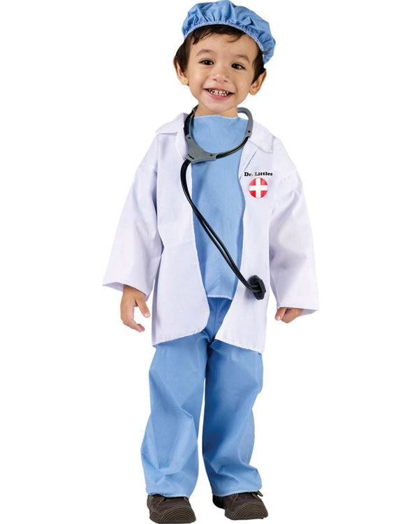 Get your little one started down the medical path early in these blue scrubs with white lab coat. This adorable costume includes pants, top, hat and lab coat.