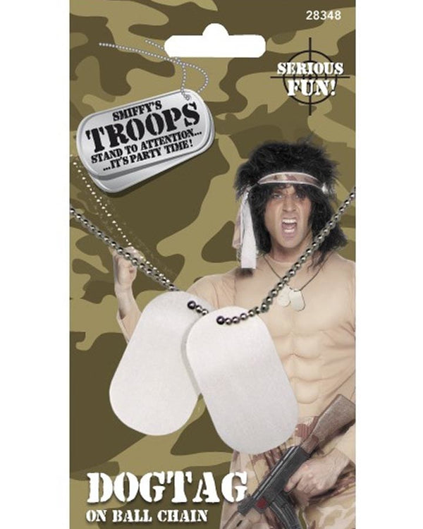 Add the finishing touch to your military costume with these Dogtags. These dogtags include a necklace which holds them strong, then finished with a silver finish and ball-chain necklace. Perfect for military costumes, DIY looks and much more.