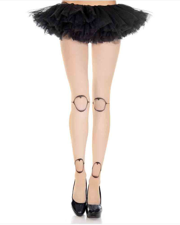 Show off your bendable joints with these Doll Tights. These beige tights have black joint detail around the knees and ankles and are the perfect addition to a broken doll costume this Halloween.
