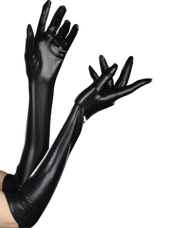 Dominique Long Black Shiny Gloves