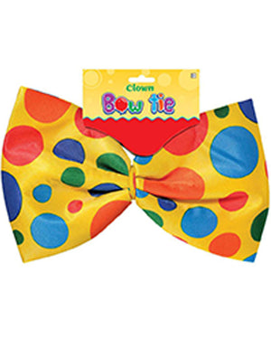 Clown around in our Dotted Clown Bowtie. The accessory features a yellow novelty bow tie with pink, orange, blue, green and dark blue polka dots, awesome for finishing your clown costume or even as a party favour for your next clown themed birthday party! Check out our red clown noses and colourful wigs to complete the look!