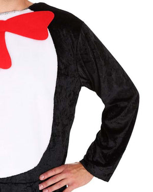 Step into the whacky and whimsical world of Dr. Seuss with this Dr Seuss Cat in the Hat Adult Plus Size Costume. This iconic costume truly captures the essence of the mischievous feline with the full-body jumpsuit featuring an easy hook and loop fastener at the centre. The jumpsuit has a white plush fabric front inset with a featured large, sewn-on red felt bow tie, ensuring you're instantly recognizable as the beloved cat. Completed with a long tail that attaches to the back of the jumpsuit with hook and loop fasteners, this costume is both comfortable and playful. We all know that no Cat in the Hat outfit would be complete without the signature tall felt top hat, featuring red and white stripes for that classic, iconic Seussian flavour. Whether you're attending a costume party or entertaining children at a Dr. Seuss-themed event, this Cat in the Hat costume is sure to delight and entertain audiences of all ages!